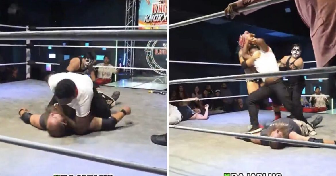 The shocking scene unfolded during a Knokx Pro Wrestling show and was broadcast on the streaming platform Kick.